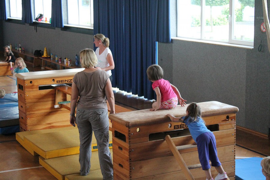 Das Kinderturnen ist ein speziell gestaltetes Angebot für Kinder im Alter von vier bis sechs Jahren, das darauf abzielt, den Kindern eine erste Erfahrung in der Turnhalle zu ermöglichen, während sie sich spielerisch und unter der Anleitung von Übungsleitern bewegen. Das Kinderturnen hat eine bedeutende Rolle in der frühkindlichen Entwicklung, da es nicht nur die körperliche Fitness und Geschicklichkeit fördert, sondern auch das Selbstbewusstsein, das Selbstvertrauen und die sozialen Fähigkeiten der Kinder stärkt. Die spielerische Natur des Programms motiviert die Kinder dazu, aktiv zu sein und sich mit Freude zu bewegen, was langfristig zu einer positiven Einstellung gegenüber körperlicher Aktivität führen kann. Die Turnstunden bieten den Kindern eine strukturierte und sichere Umgebung, um ihre körperlichen Fähigkeiten zu entdecken und ihre motorischen Fähigkeiten zu verbessern, während sie gleichzeitig Spaß haben und sich in einer neuen Umgebung wohlfühlen.